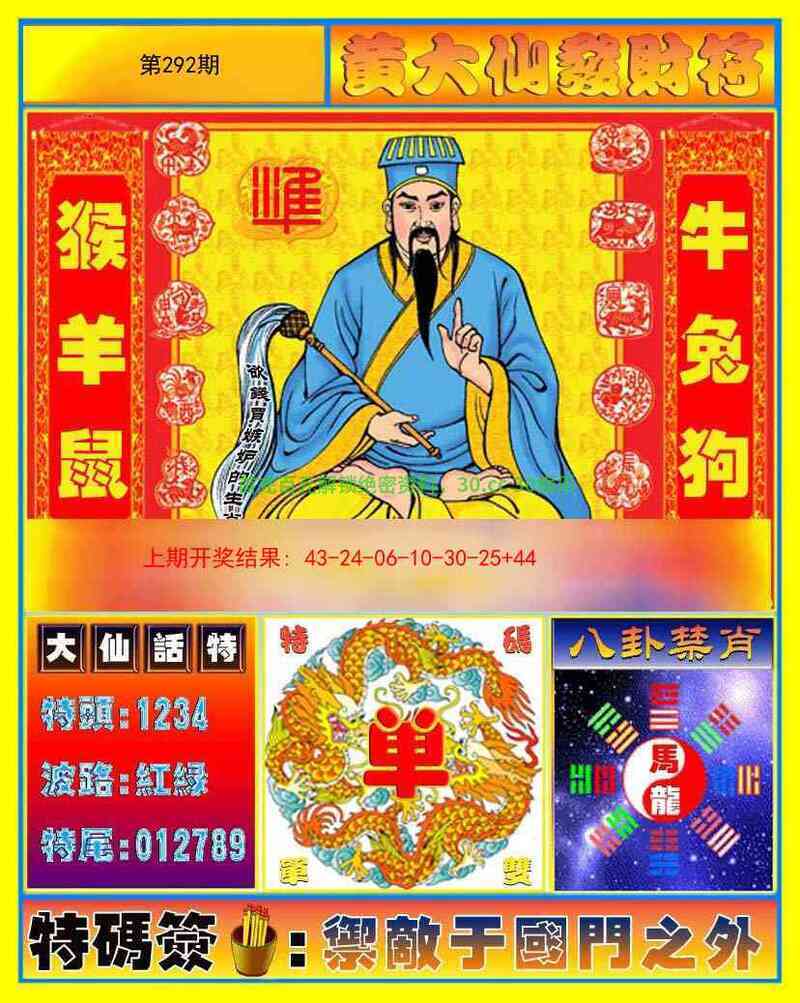 296期:密门仙机/心水特码信/黄大仙天书/波色生肖诗/生肖歇后语